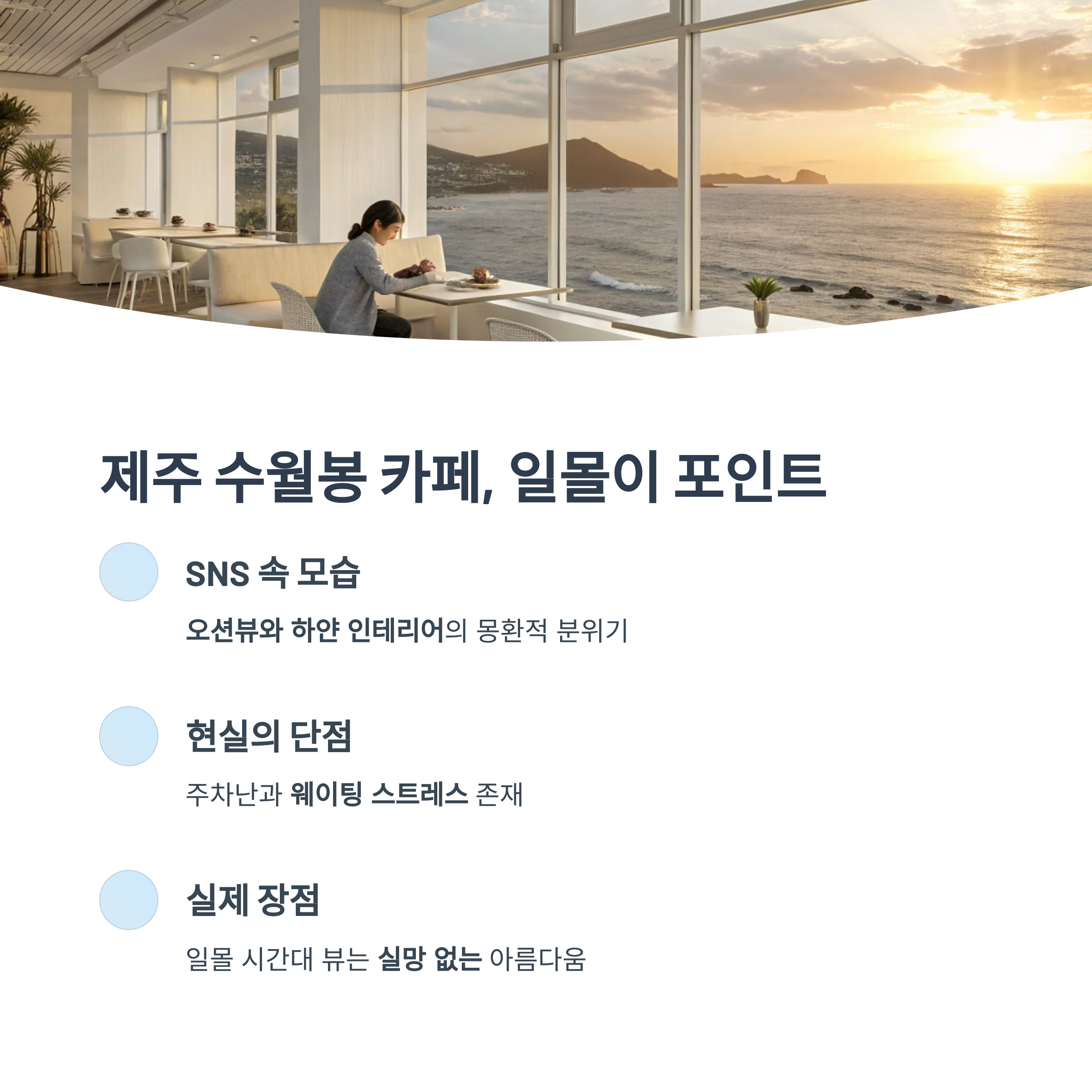 | 제주 수월봉 카페촌 | 오션뷰 + 인테리어 | 뷰 최고 / 주차·대기 불편 | 일몰 타이밍 추천 |